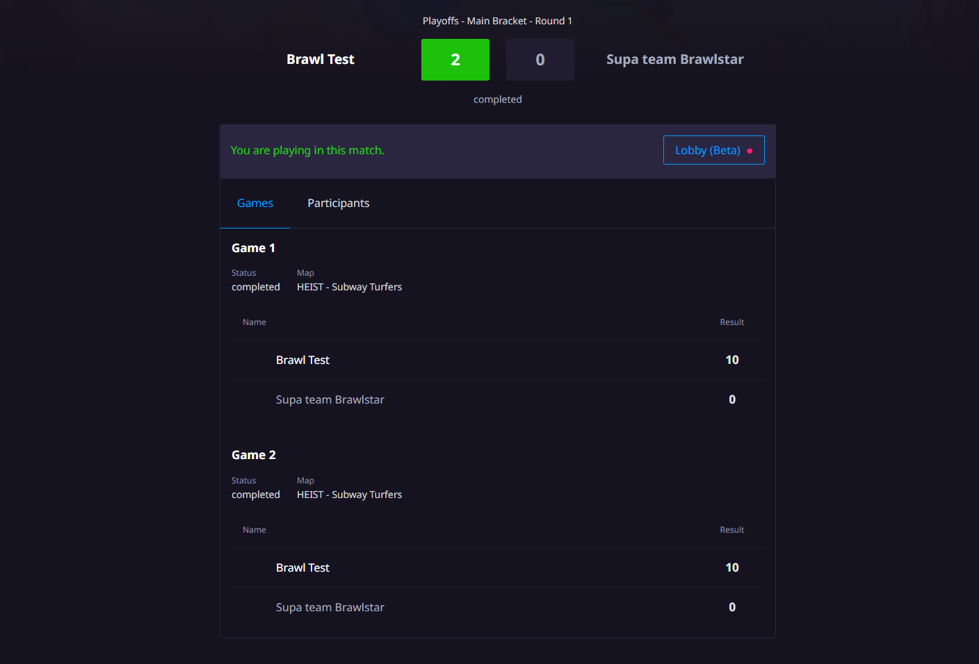 They will play their Best-of match and the final result will be automatically retrieved and displayed on Toornament.